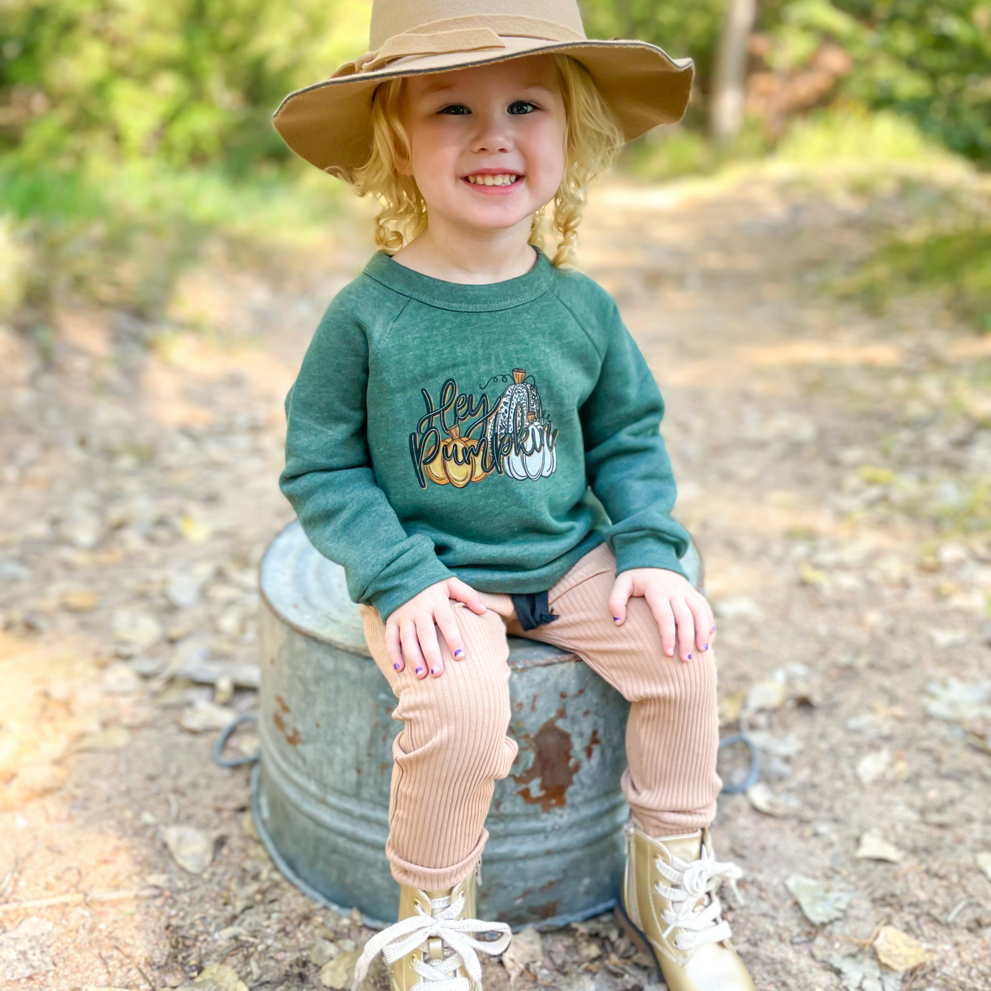 Show off your love for the pumpkin season in our buttery soft tee retro style! The cute Hey pumpkin graphic is perfect for the pumpkin season. Snag it is a cozy warm sweatshirt for your little!